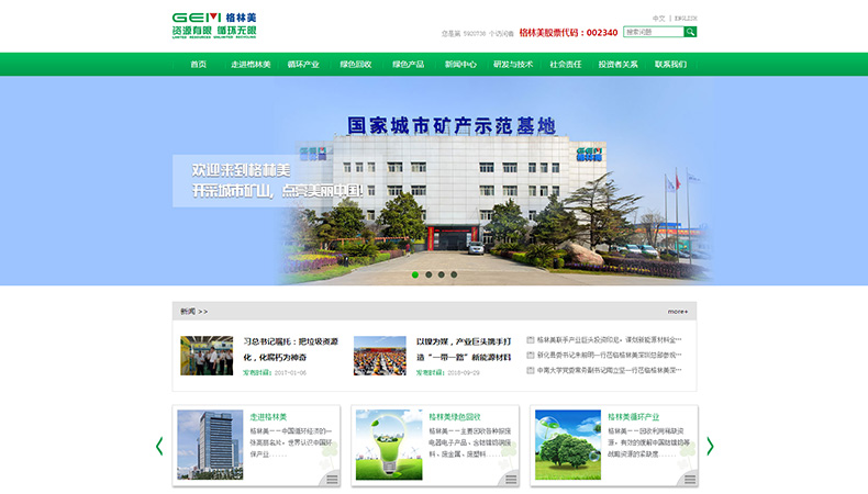 深圳市格林美高新技术股份有限公司于2001年12月28日在深圳注册成立, 2006年12月改制为股份制企业,2010年1月登陆深圳证券交易所中小企业板,股票代码002340,是中国开采城市矿山资源第一支股票、再生资源行业和电子废弃物回收利用行业的第一支股票,注册资金75345.68万元,净资产21.6余亿元,在册员工3500余人。2012年度销售收入达到14.18亿元,净利润为1.44亿元。