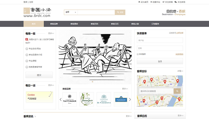 《香圃小径》是全国首个专业、专注、专心于“香槟”的中文资讯服务平台,其中所有工具及服务性栏目都与“香槟”密不可分。荡漾其中,您将采撷到更多关于香槟的迷人芳香。无论是香槟酒爱好者、专业人士或是酒类营销企业,都可以从《香圃小径》中获取最专业的香槟知识、最新鲜的香槟资讯,最全面的香槟区酒庄品牌信息。