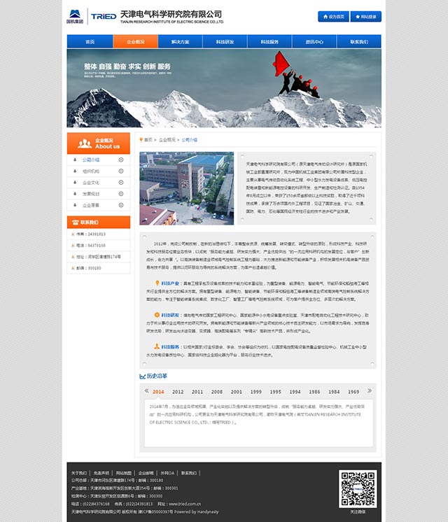 天津电气传动设计研究所是原国家机械工业部直属研究所,成立于1954年8月。该所于2001年6月注册成为企业法人,2002年5月通过IS09000质量管理体系认证,2009年9月被认定为国家级高新技术企业,2011年3月被认定为国家级创新型企业,为中国机械工业集团有限公司全资科技型企业,是国家电气传动及自动化系统工程、中小型水力发电成套设备和低压电控配电成套装罝的主要科研开发和生产制造基地。