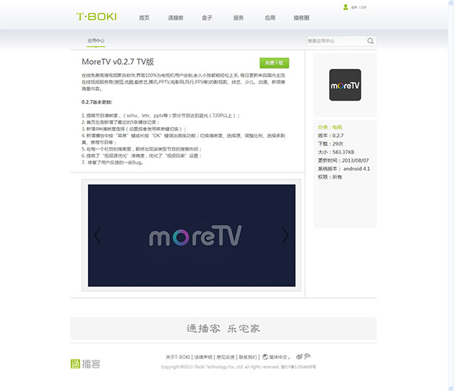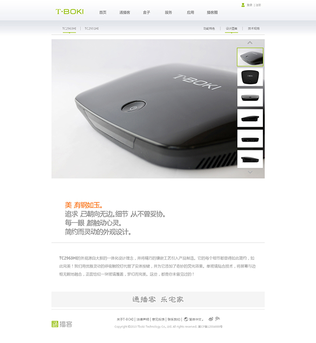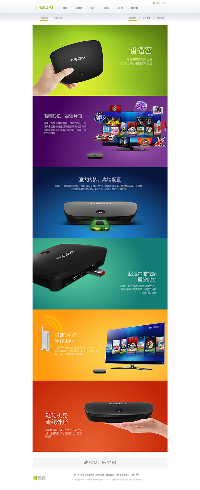 通播客(T-BOKI)是通广集团旗下高清媒体盒产品的注册商标,传承TCB品牌并注入时尚、创新、国际化等新的元素。通播客定位于基于互联网的高清影视终端产品,为用户带来品质一流、功能强大、丰富多彩、时尚前卫的互联网数字电视收视体验。